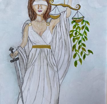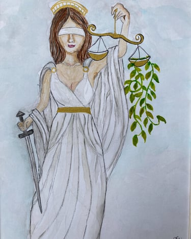 In the stillness of her presence, she stands, eyes veiled, holding the scales and the sword, symbols of what we strive to be, in a world seeking balance, seeking truth.